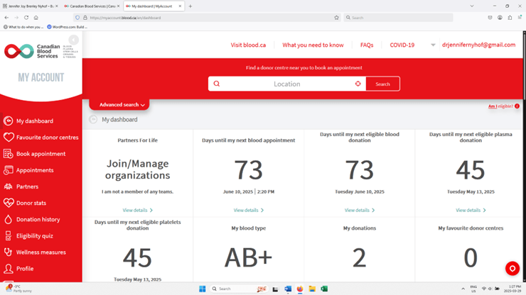 and since a new agreement has been reached, in accordance with NASA contractual obligations all encompassing, then my time slot appointment for whole blood donation [not plasma component, no plasmapheresis] at Canadian Blood Services has been booked and it is scheduled for June 10 2025 at 2:20 p.m. and I will there on time for sure and with in-person attendance